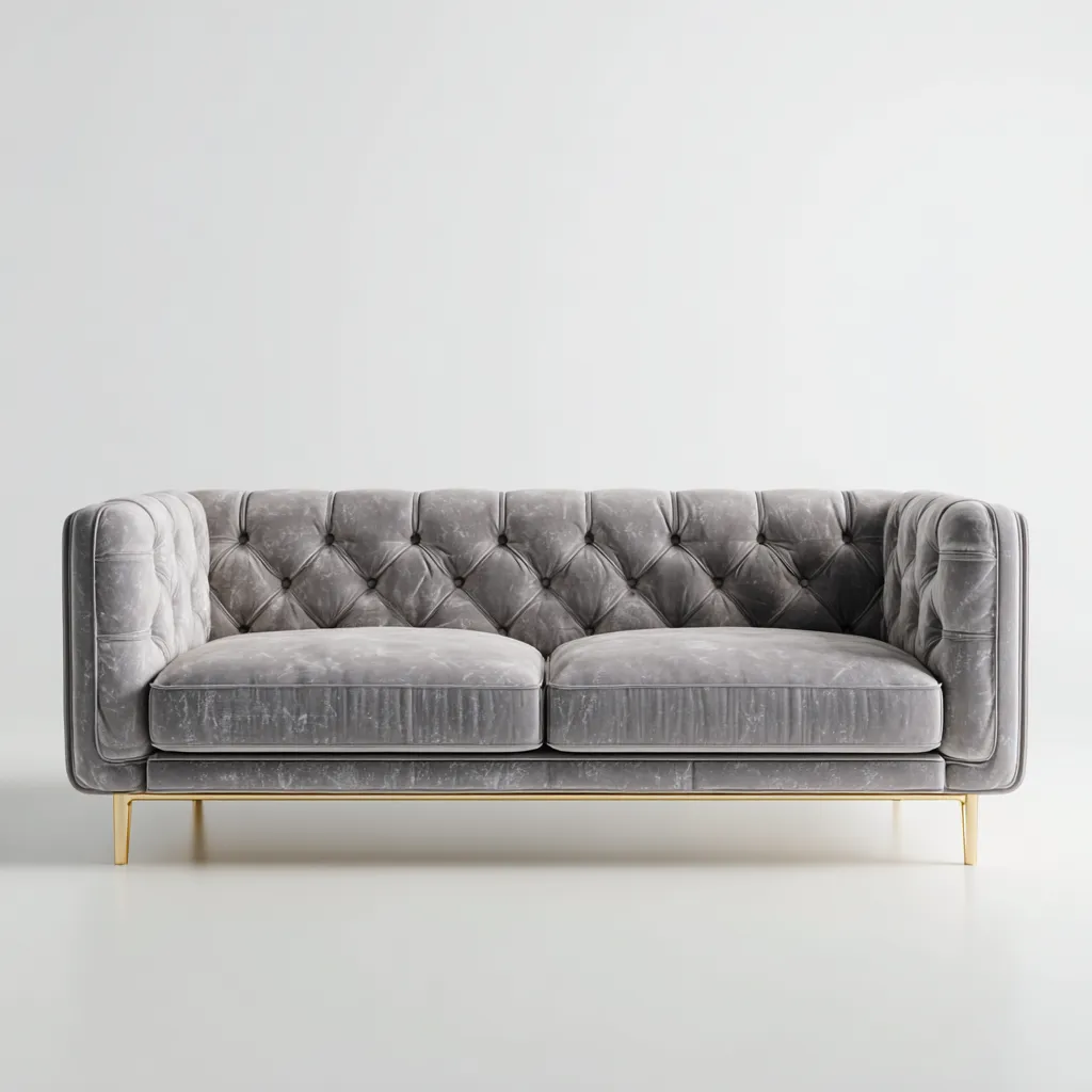 Ce canapé 2 places apporte une atmosphère élégante et raffinée au salon. Son revêtement doux et son dossier capitonné créent un espace de détente confortable, parfaitement adapté à un intérieur contemporain ou classique.